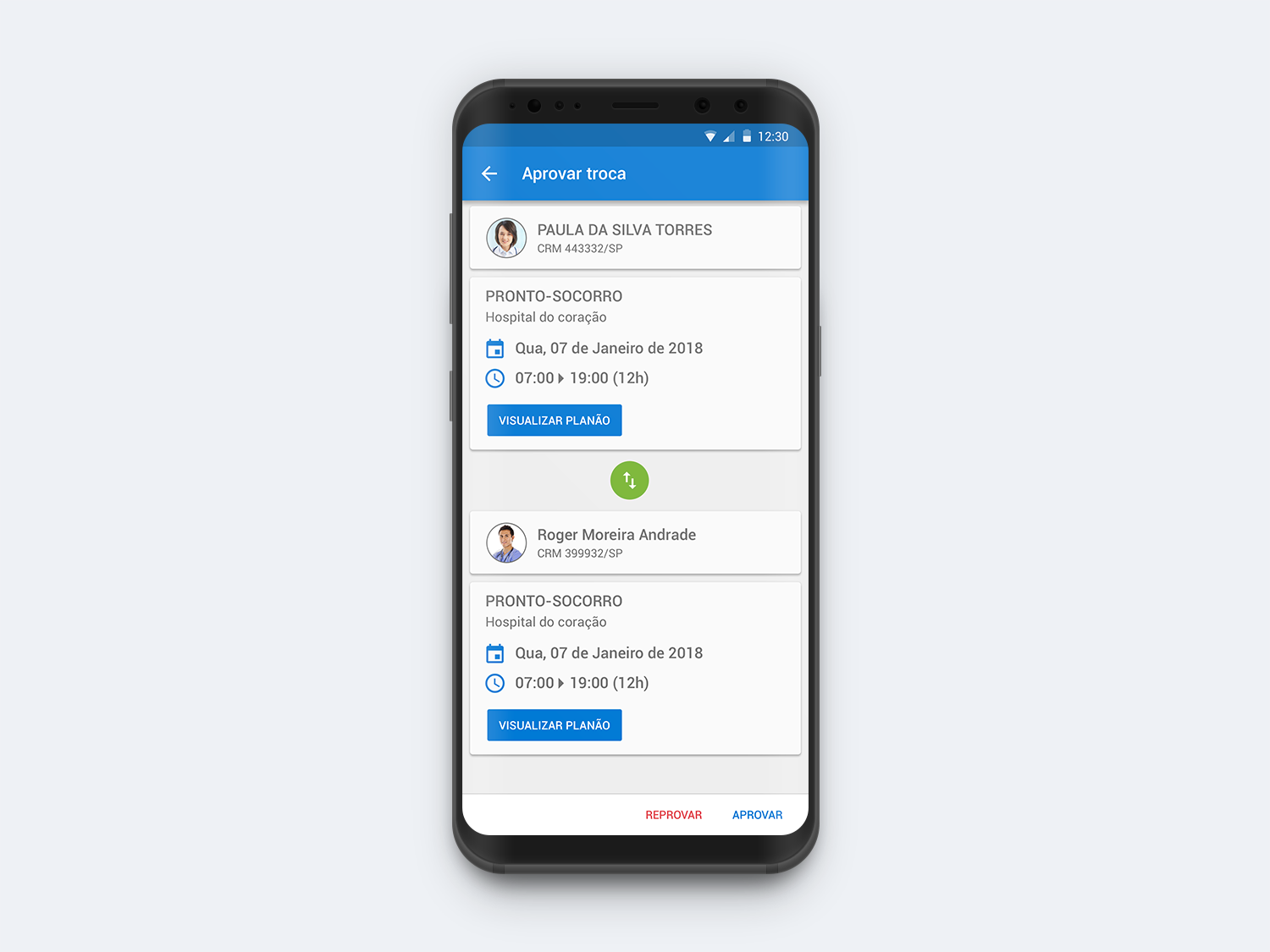 O coordenador da empresa pode aprovar ou não as solicitações de troca diretamente pelo aplicativo. Para isso, basta o coordenador estar logado com sua conta, que ele terá acesso a todas as solicitações de troca. Lembrando que a empresa deve ativar esta configuração.